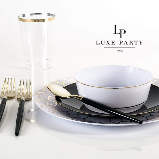 Round Blush • Gold Lattice Pattern Plastic Plates | 10 Pack